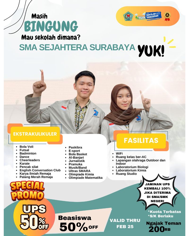 Pendaftaran Peserta Didik Baru (PPDB) SMA Sejahtera Surabaya dilakukan melalui jalur online maupun langsung datang ke sekolah.